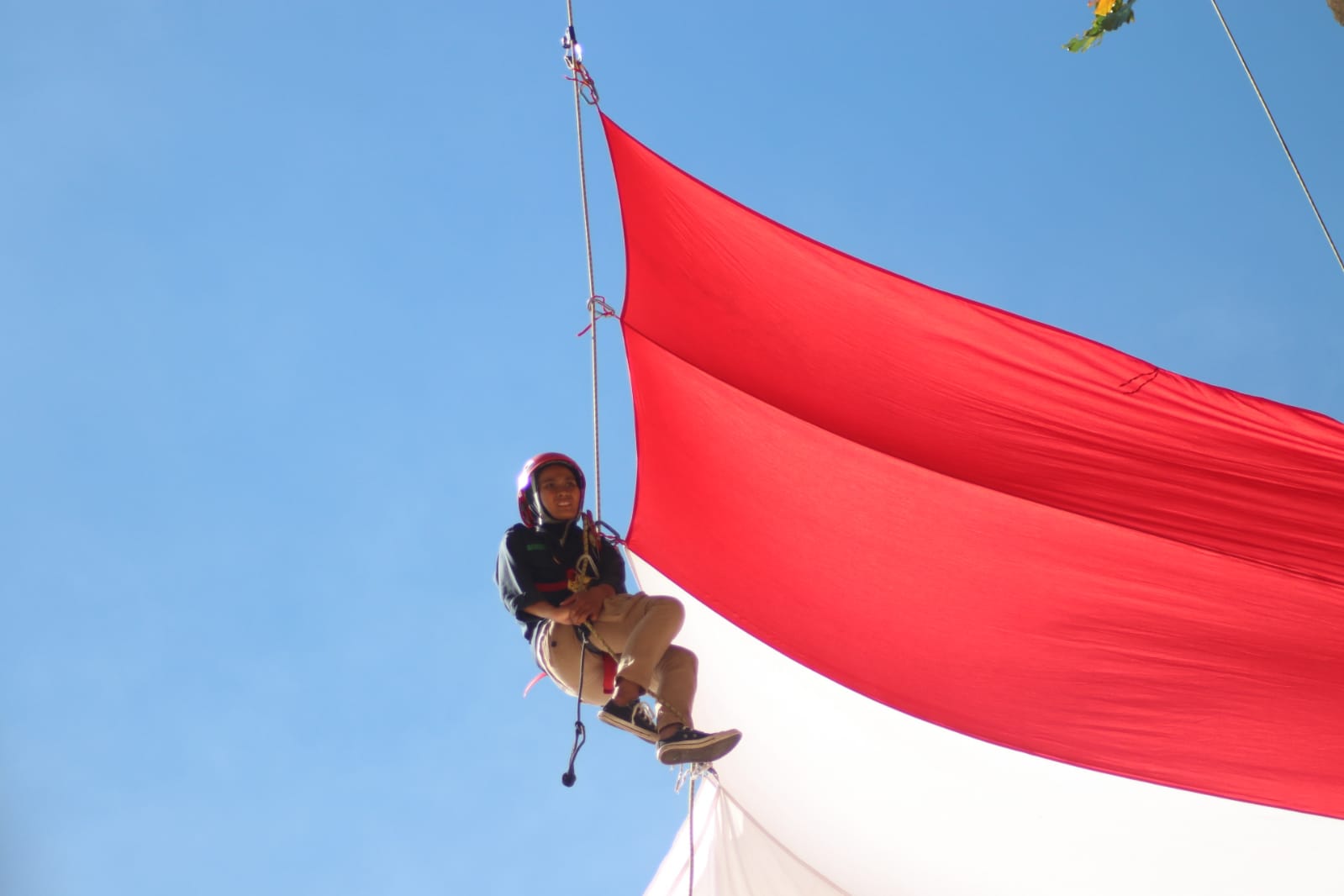 Lebar bendera yang dikibarkan tadi dengan panjang 16 meter dan lebar 4 meter, empat atlit yang terdiri dari tiga laki-laki dan satu perempuat tersebut telah dilatih sejak lama untuk menyambut hari proklamasi ini. Mereka sudah menyiapkan jauh hari, yaitu Raihan, Siti Alawiyah, Umar dan Syauki. Dan kegiatan ini sudah dua kali kami lakukan.