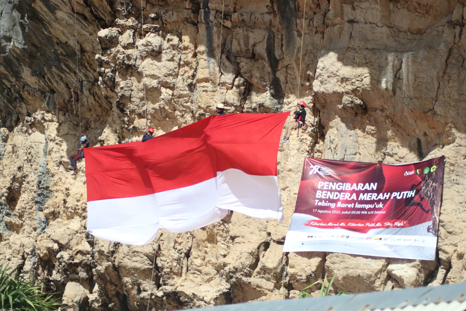 Femini.id – Memperingati Hari Ulang Tahun (HUT) RI ke-77 berbagai kreatifitas ditampilkan masyarakat Aceh untuk memeriahkan kemerdekaan. Seperti yang dilakukan Mahasiswa (UKM) PA-LH Gainpala UIN Ar-Raniry yang mengibarkan bendera raksasa di tebing Lampuuk, Desa Meunasah Bale, Kecamatan Lhoknga, Aceh Besar.